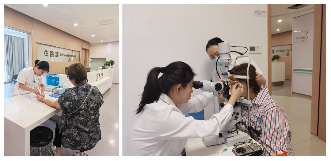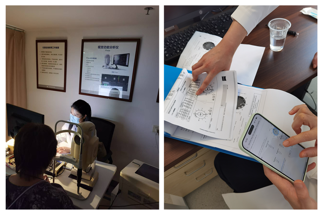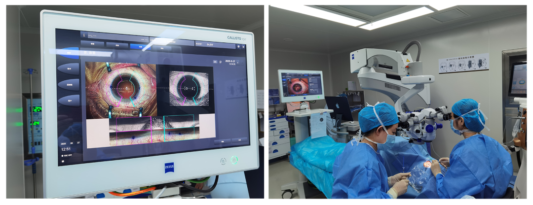 左图:术前特检科何梦宜主任再次检测人工晶体参数 **复合